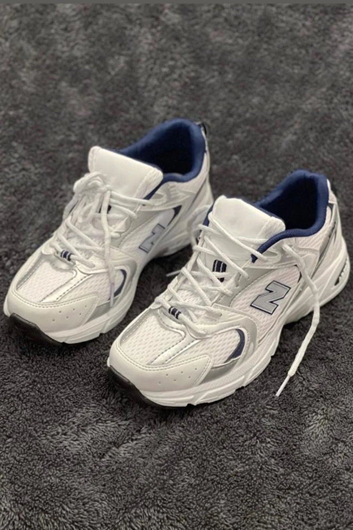 Aleynashoes Women's White Navy Blue Sports Shoes