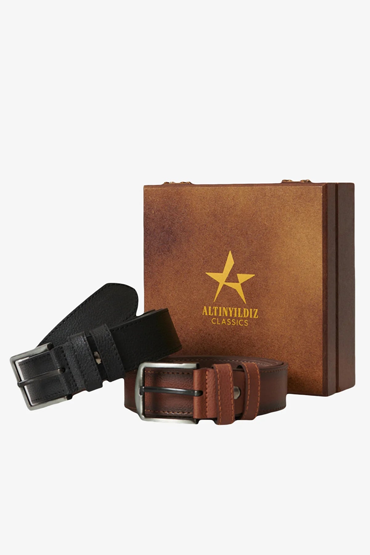 Altınyıldız Classics Men's Black-Brown Special Wooden Gift Boxed