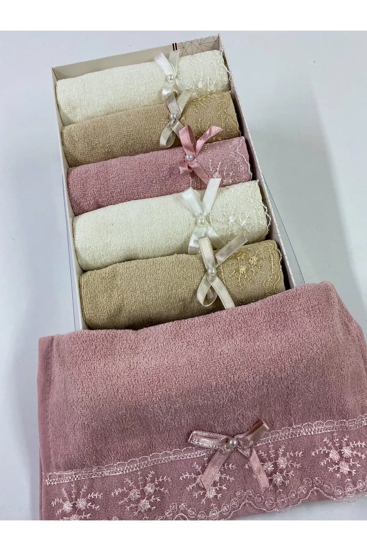 Ayhan Home Kitchen 6-Piece Velvet Bow Patterned 30x50 Dowry Gift Kitchen Towels