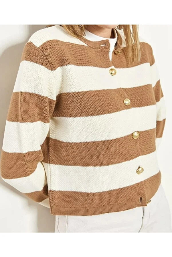 Bolesa Suadiye Women's Gold Buttoned Crop Cardigan
