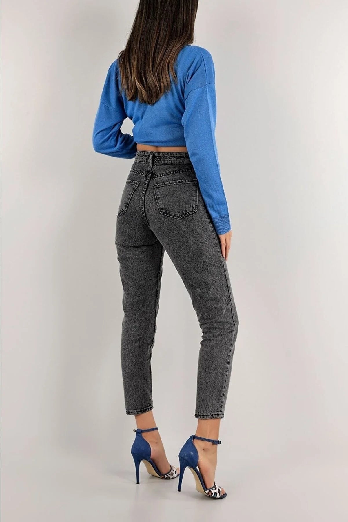 ByCukurovaFrango Women's Smoked High Waist Cut Mom Jean Jeans