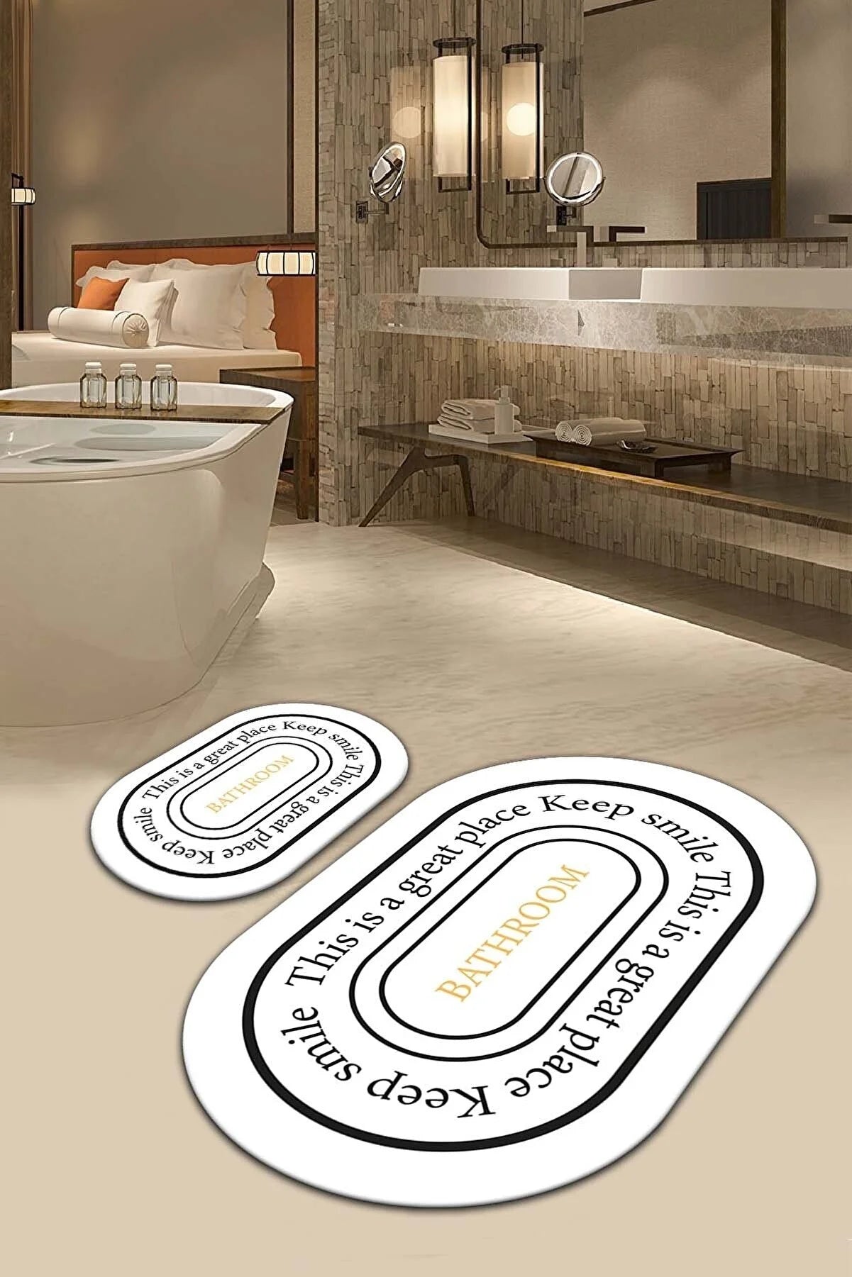 Cp Rug Decorative Bathroom Non-Slip Based Washable Set Of 2-Piece Bath Mat