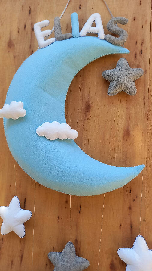 Crenay Handmade Moon Kids Wall Name Banner 70cm x 30cm