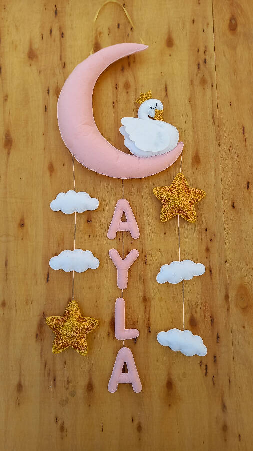 Crenay Handmade Swan Kids Name Wall Hanger 70cm x 30cm