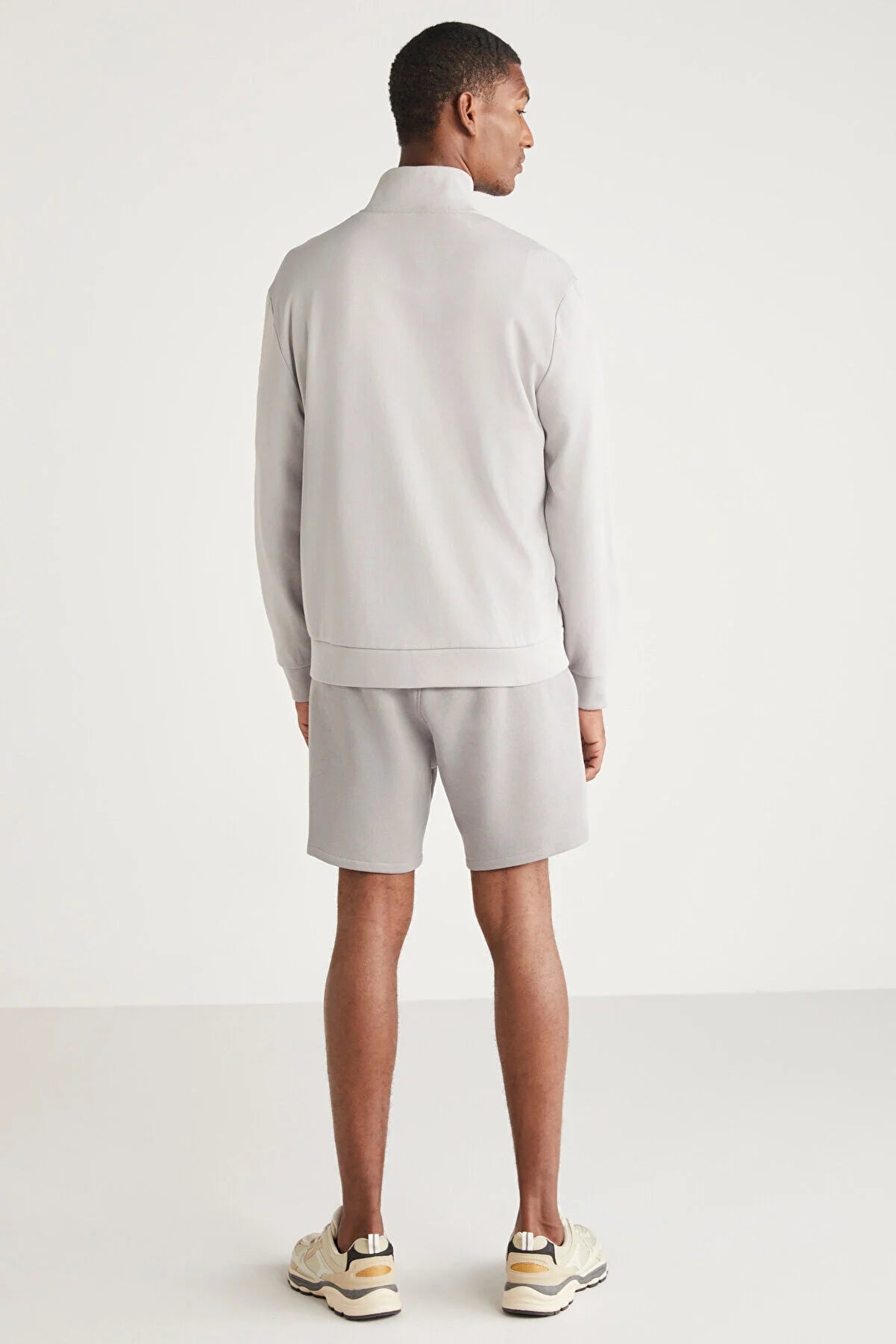 Grimelange Men's Grey Zippered Printed Daily Jacket