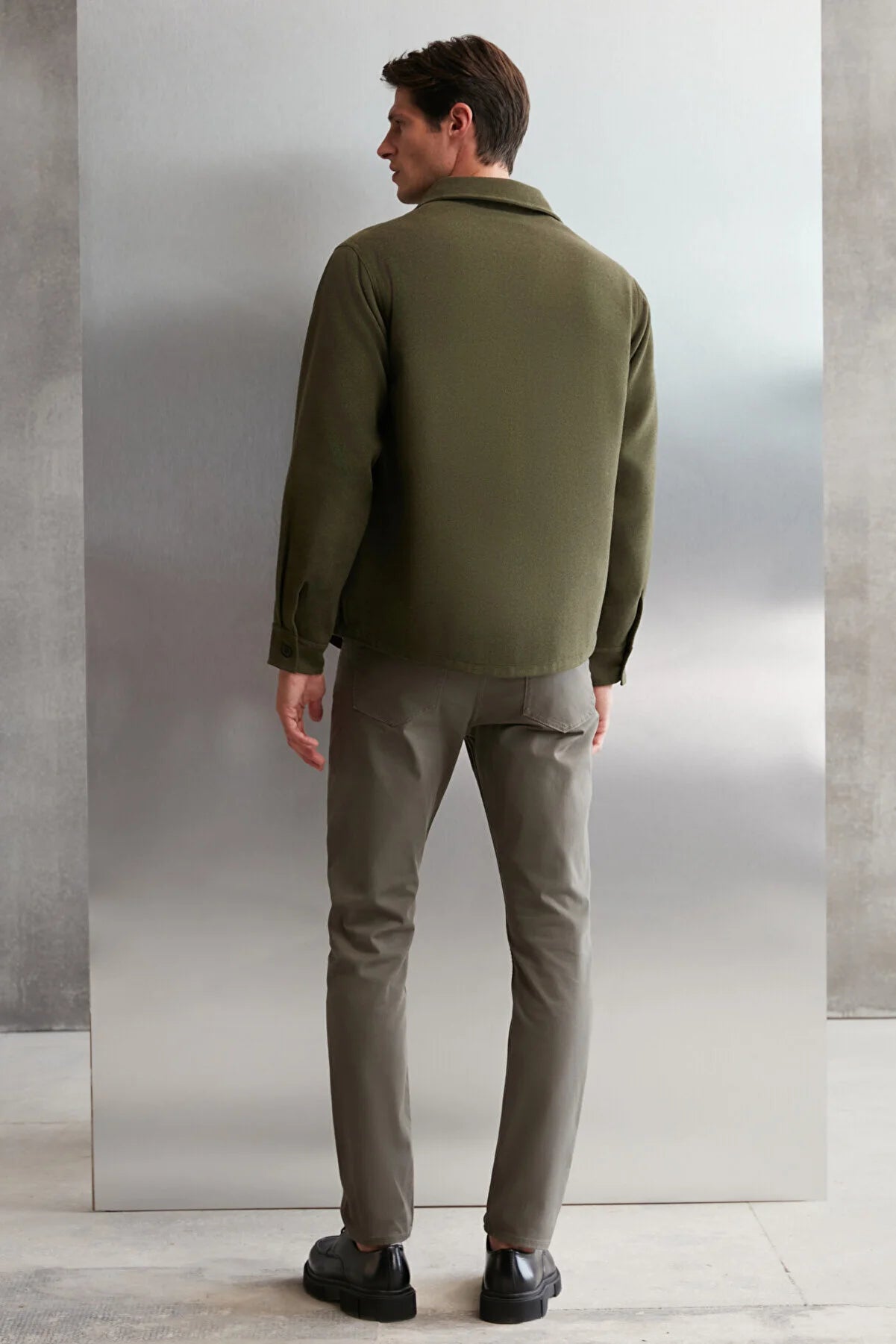 Grimelange Men's Khaki Regular Fit Thick Stitching Fabric Jacket