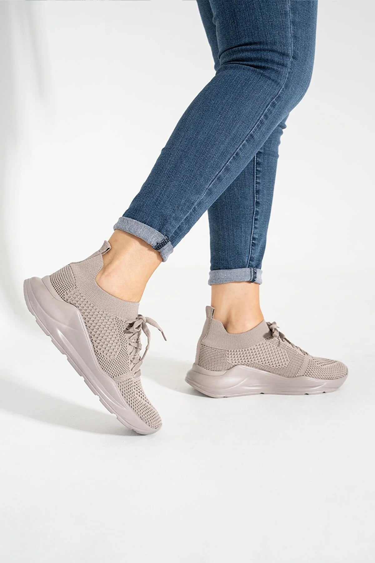Inan Ayakkabi Women's Beige Knitwear Sports Shoes