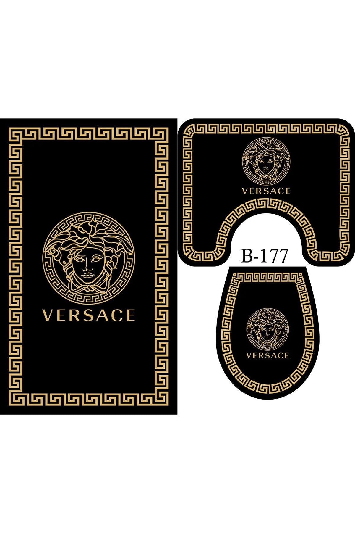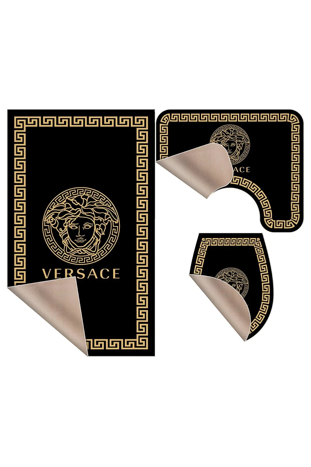 Modern home Bathroom Set of 3 Versace Digital Printed Toilet Bowl Set Non-Slip Base Bath Mat