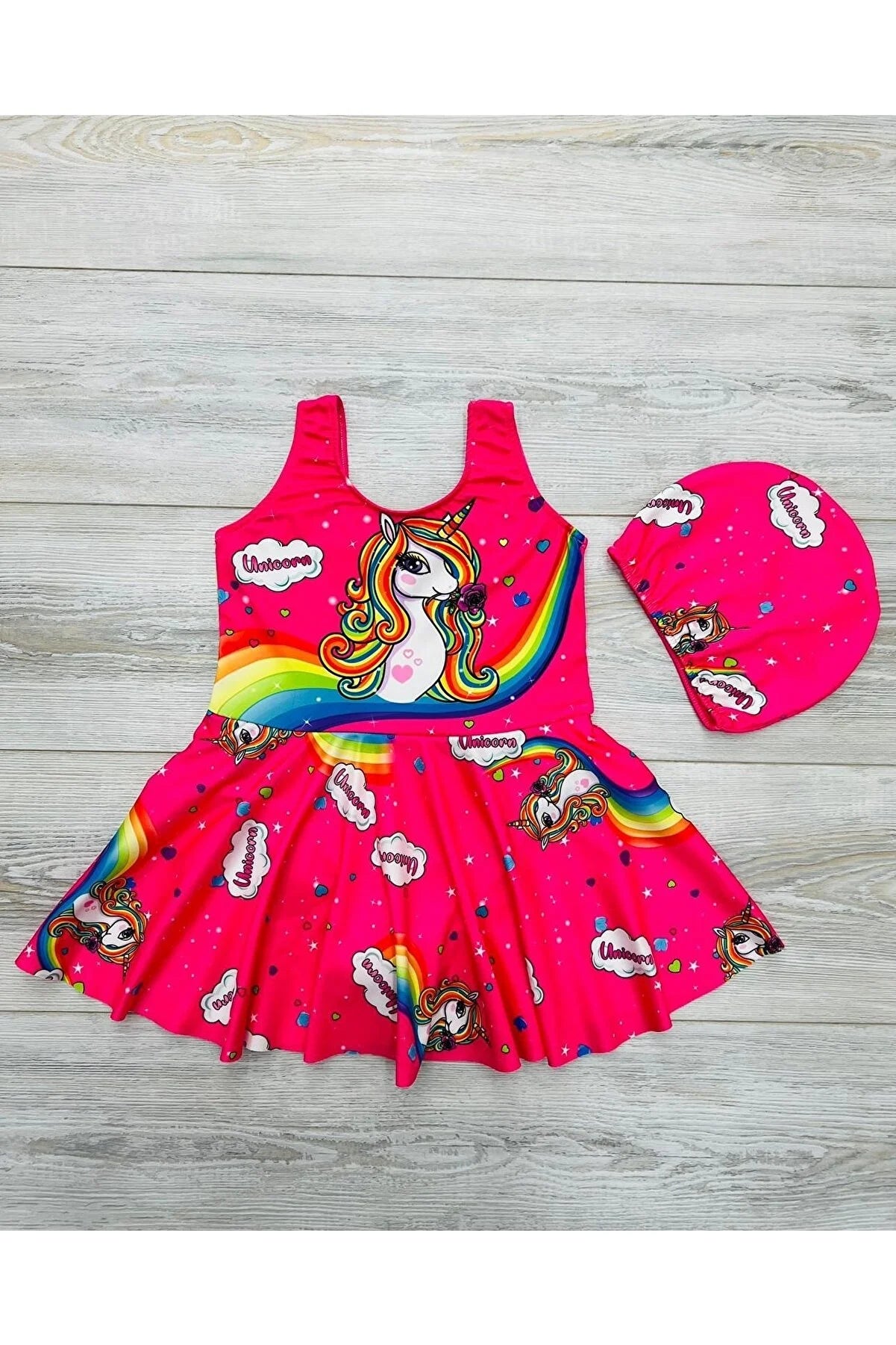 My Kids Wear Cartoon Patterned Bonnet Swimsuit