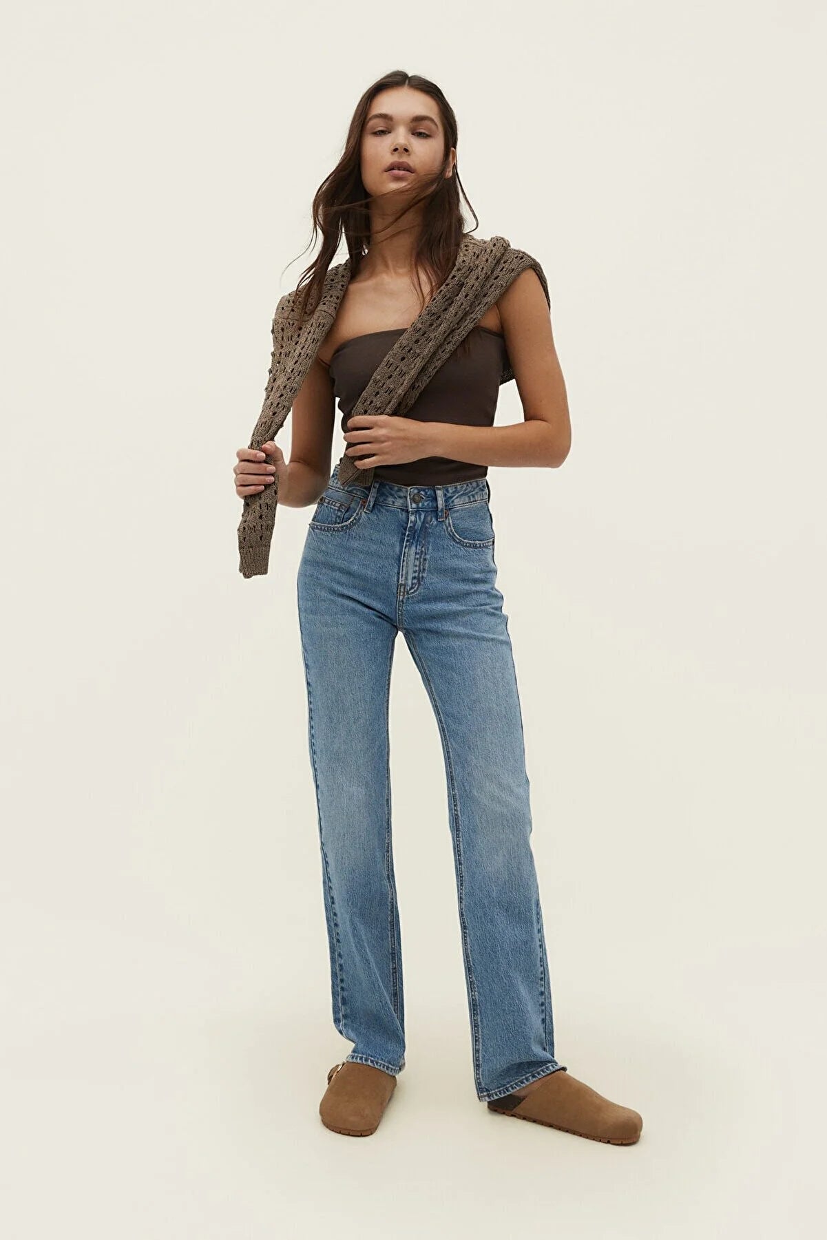 Stradivarius Women's Blue Straight Fit Vintage Jeans