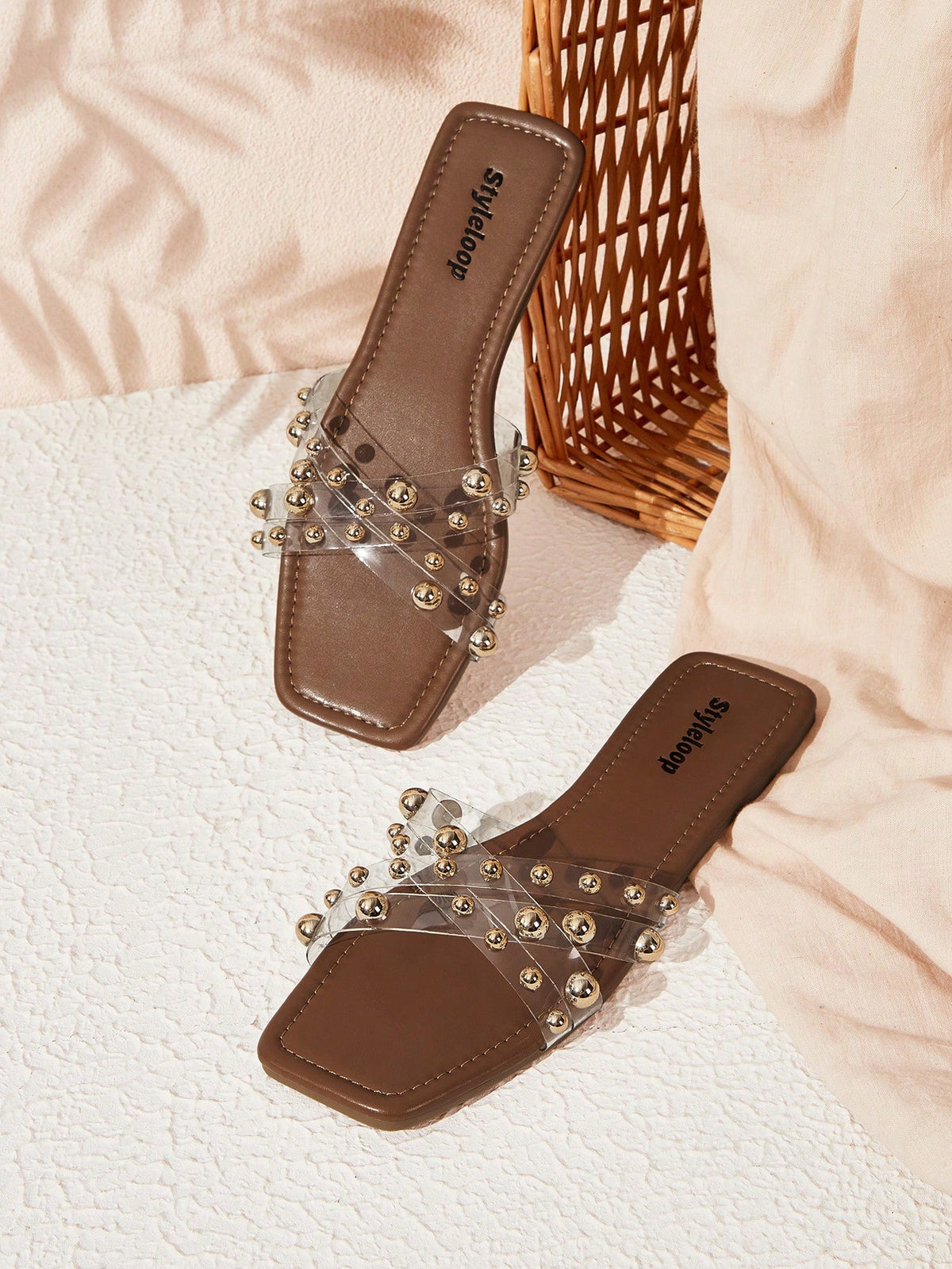 Styleloop Women Summer Flat Sandals With Metallic Decorative Cross Straps Boho Feels