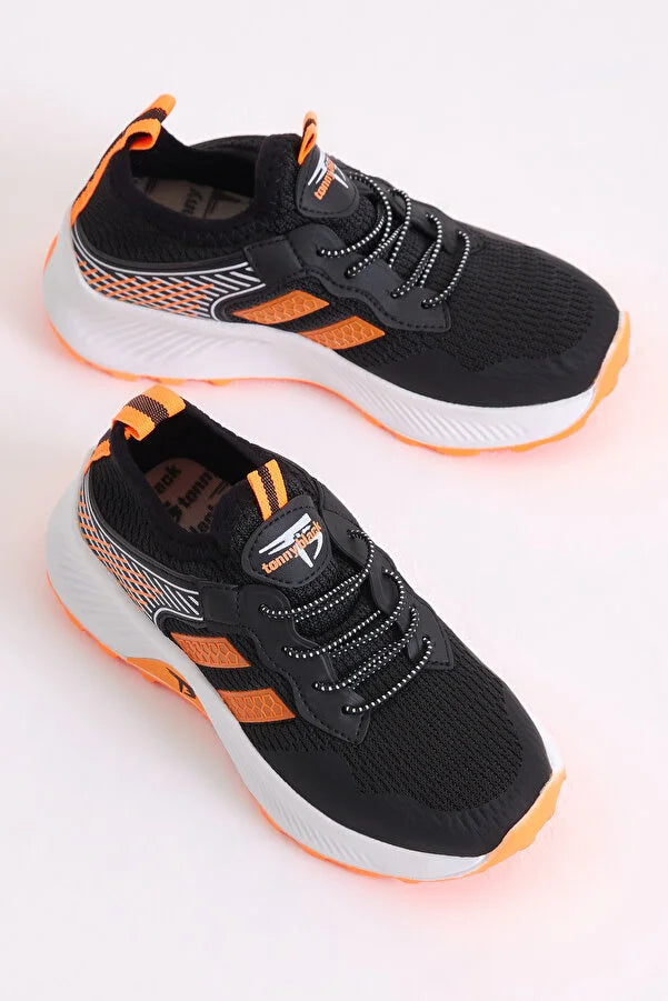 Tonny Black Boy's Black Orange Comfortable Breathable Fabric Lace-Up Sport Shoes