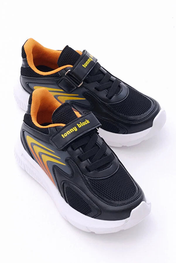 Tonny Black Boy's Black Orange Rubber Laced Velcro Sports Shoes