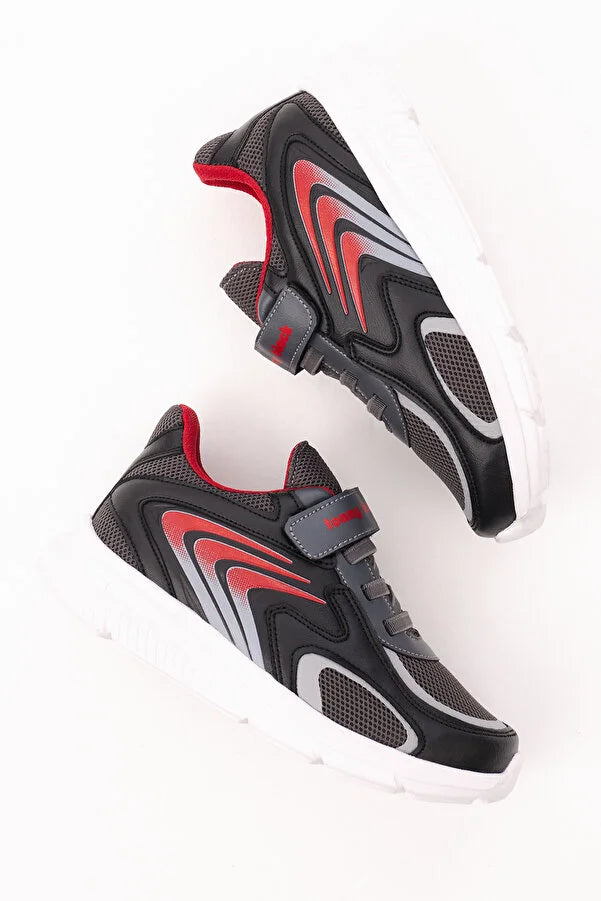Tonny Black Boy's Black Red Rubber Laced Velcro Sports Shoes