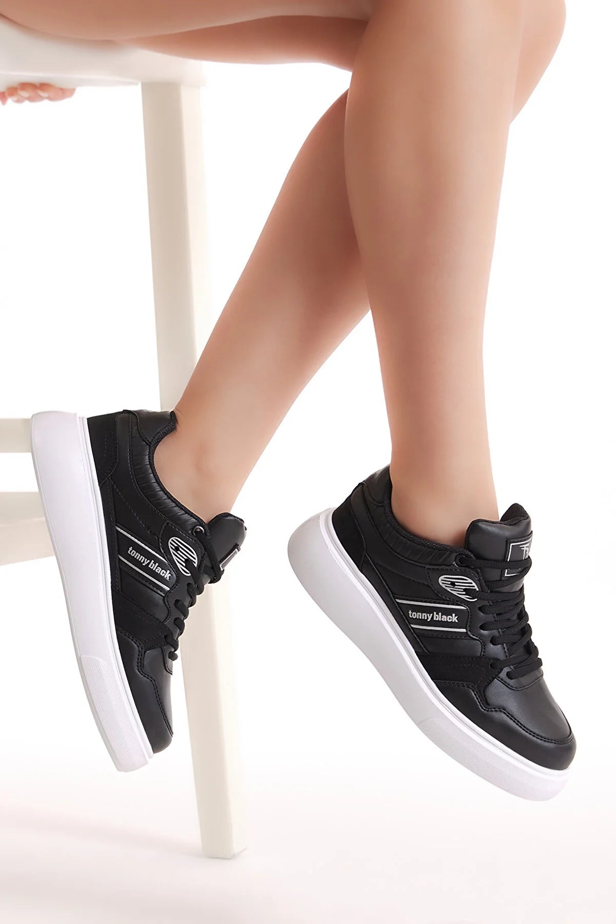 Tonny Black Women's White And Black Poly Sole Side Sport Shoes