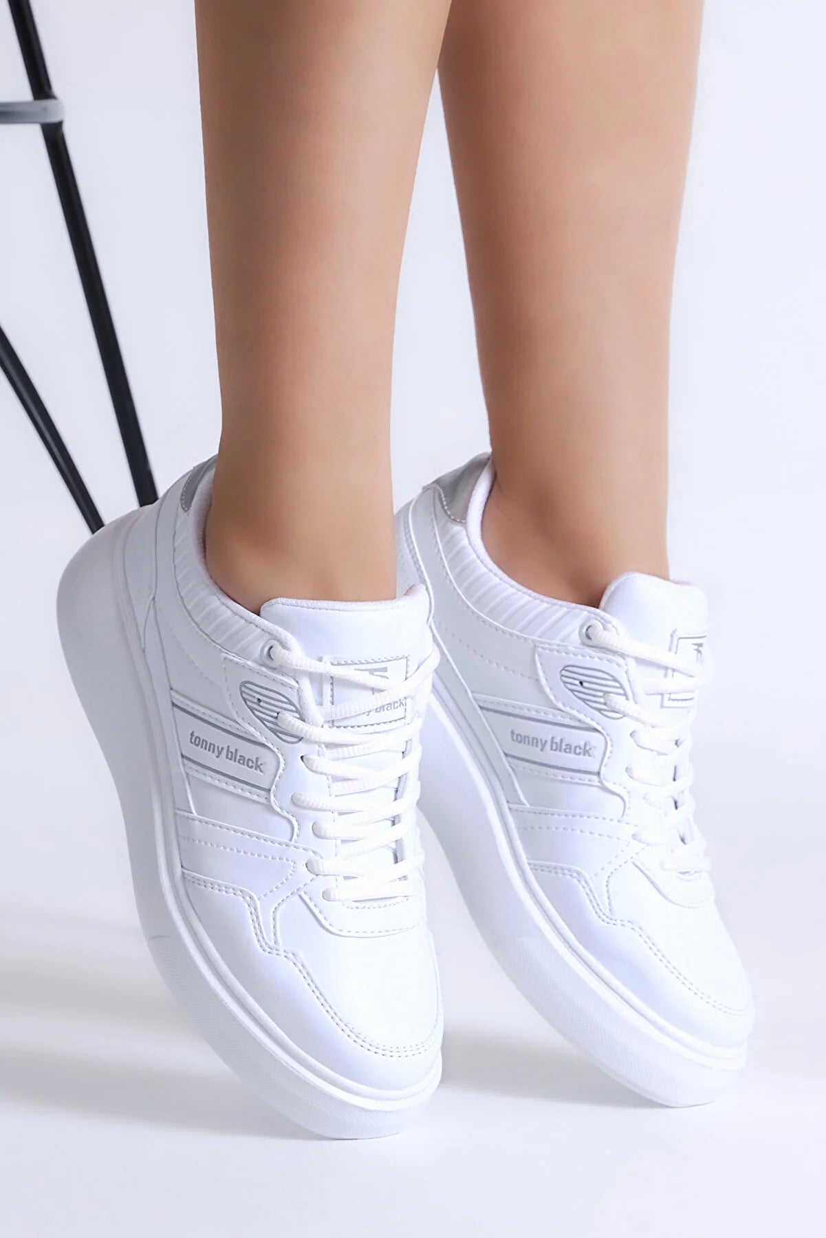 Tonny Black Women's White Poly Sole Side Sport Shoes