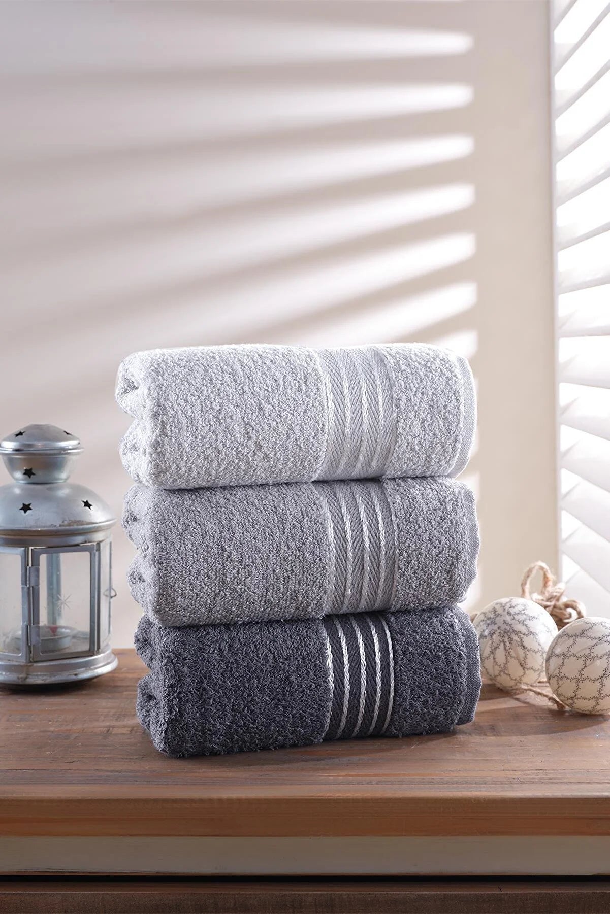 Zeynep Tekstil Bathroom Lines Set of 3 Hand & Face 50x90 Cm Towels
