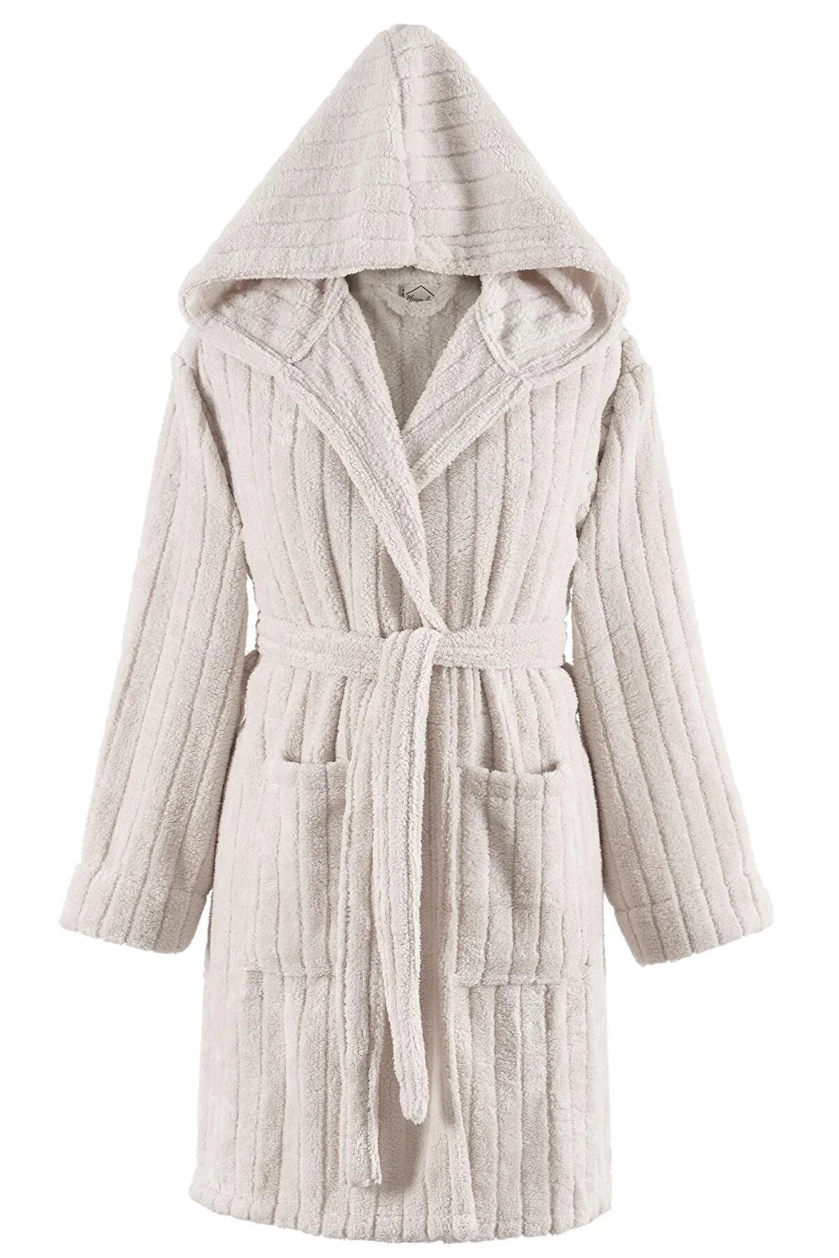 Zeynep Tekstil Women's Cream Comfy Luxurious Hooded Wellsoft Plush Bathrobe