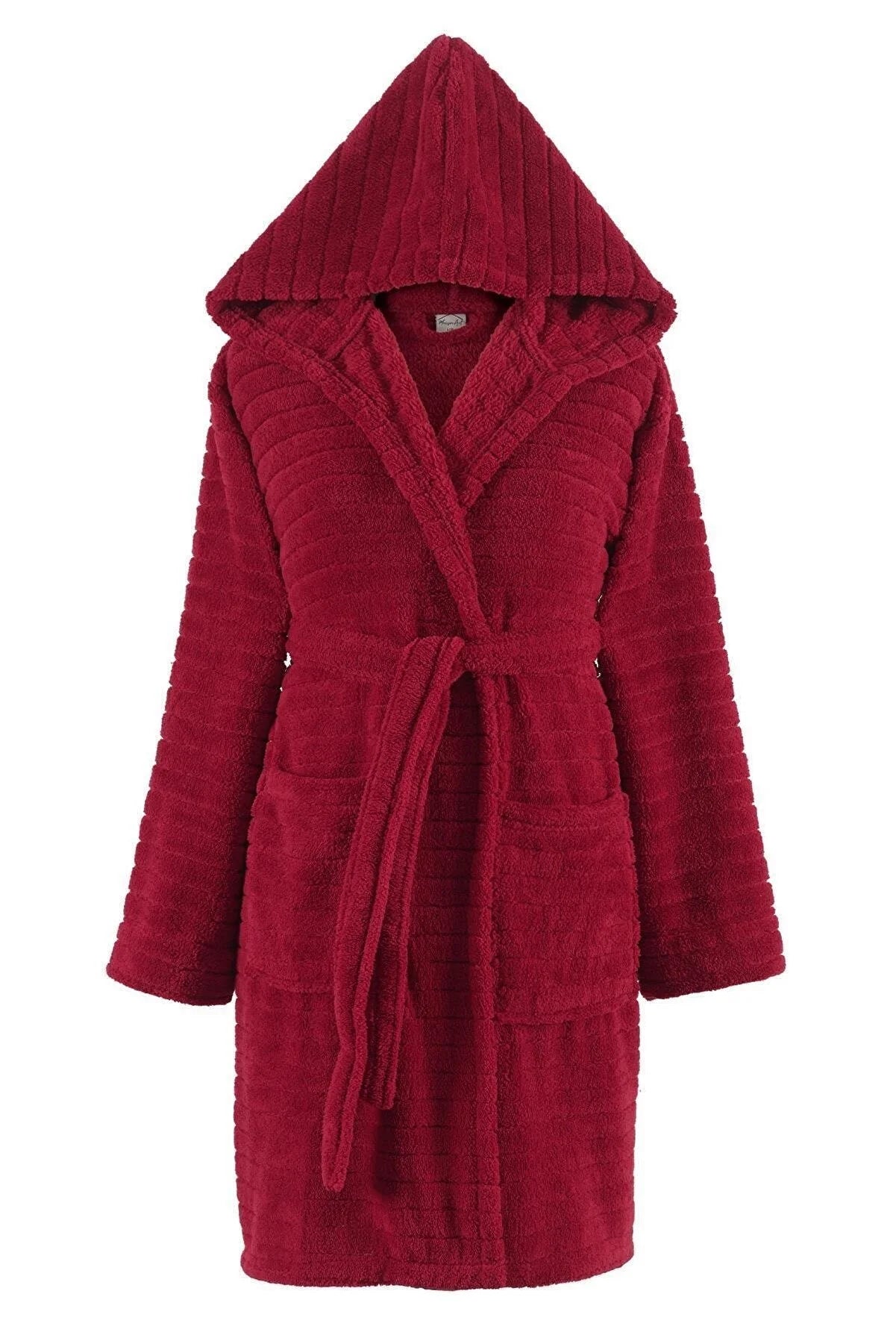 Zeynep Tekstil Women's Red Comfy Luxurious Hooded Wellsoft Plush Bathrobe