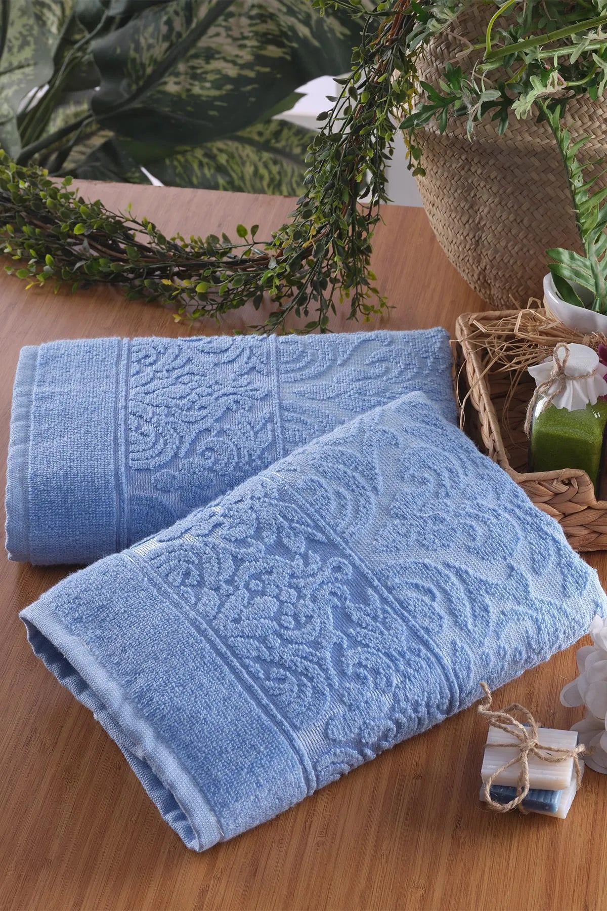 Zeynep Textile Bathroom Blue Soft Set of 2 50x90 Cm Hand & Face Towels